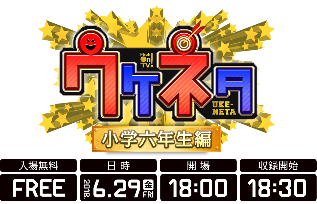 本イベントは、Flick!On!TVオリジナル番組「ウケネタ小学六年生編」の収録をご観覧いただける、Flick!On!TVアプリ会員限定の無料イベントです。